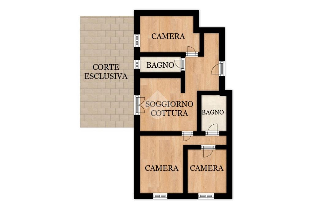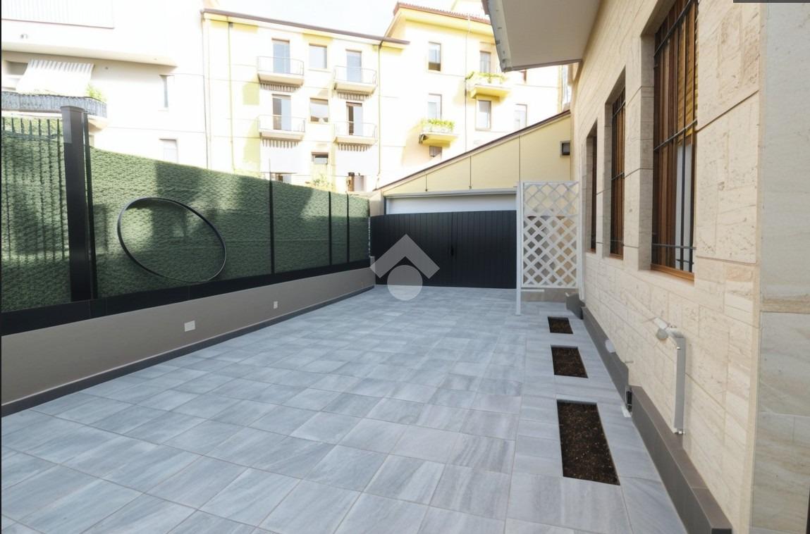 BORGO VENEZIA - appartamento al piano terra composto da ingresso, soggiorno-cottura con cortile privato di ca. 35 tre camere da letto, doppi servizi, vano uso cantina e vano uso garage.