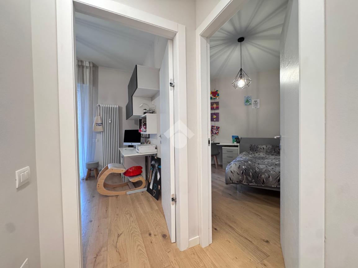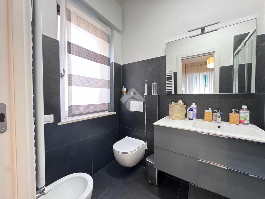 La zona notte è composta da una spaziosa camera matrimoniale con bagno privato finestrato e doccia, oltre a due ampie camere doppie, entrambe con accesso a un grande balcone. A completare la soluzione, un secondo bagno con doccia e una pratica lavanderia.